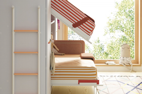 Las literas abatibles dobles te ofrecen muchas posibilidades para que puedas configurar el espacio ideal para dos niños.
